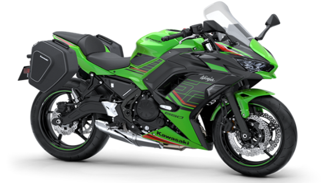A sample photograph of the 2020-2023 Kawasaki Ninja 650 light green color motorcycle with front end damage reportedly in the crash is seen with the story.